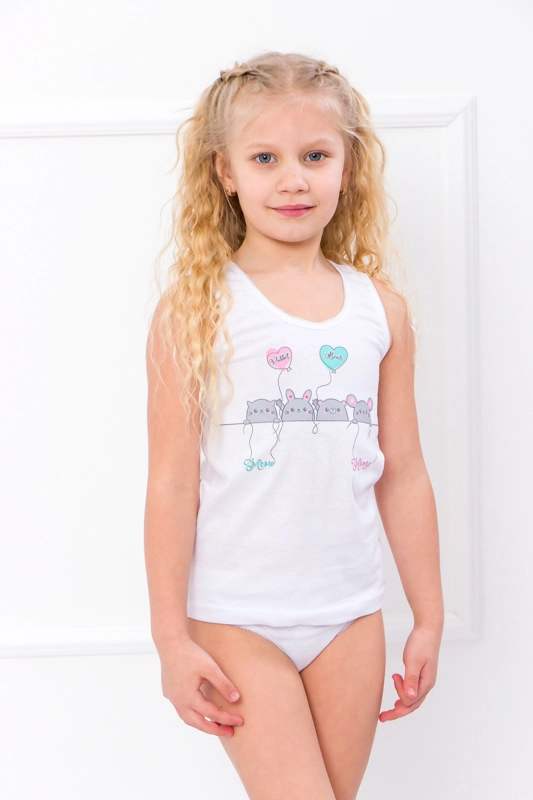 Дуже легкий, літній комплект для дівчаток з однотонного куліру. Майка доповнена оригінальним барвистим накатом. Одяг з кулірної гладі дуже легкий і повітряний, актуальний для літнього часу і спекотної погоди.