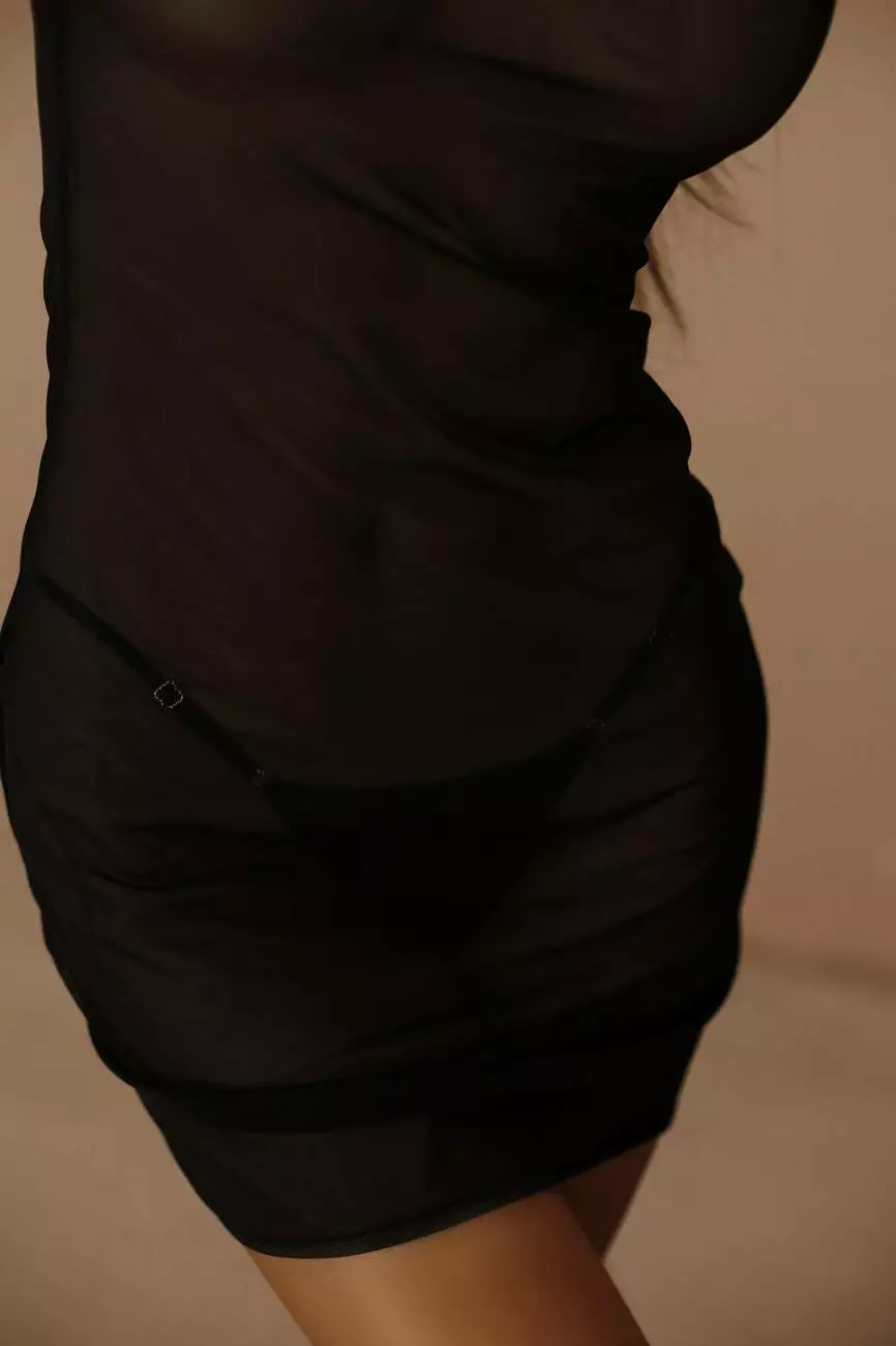 Комплект з еластичної сітки. Бретелі регулюються. Трусики стрінги з регуляторами з боків.
