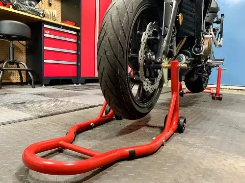 професійній майстерні. Він дозволяє легко піднімати мотоцикл з