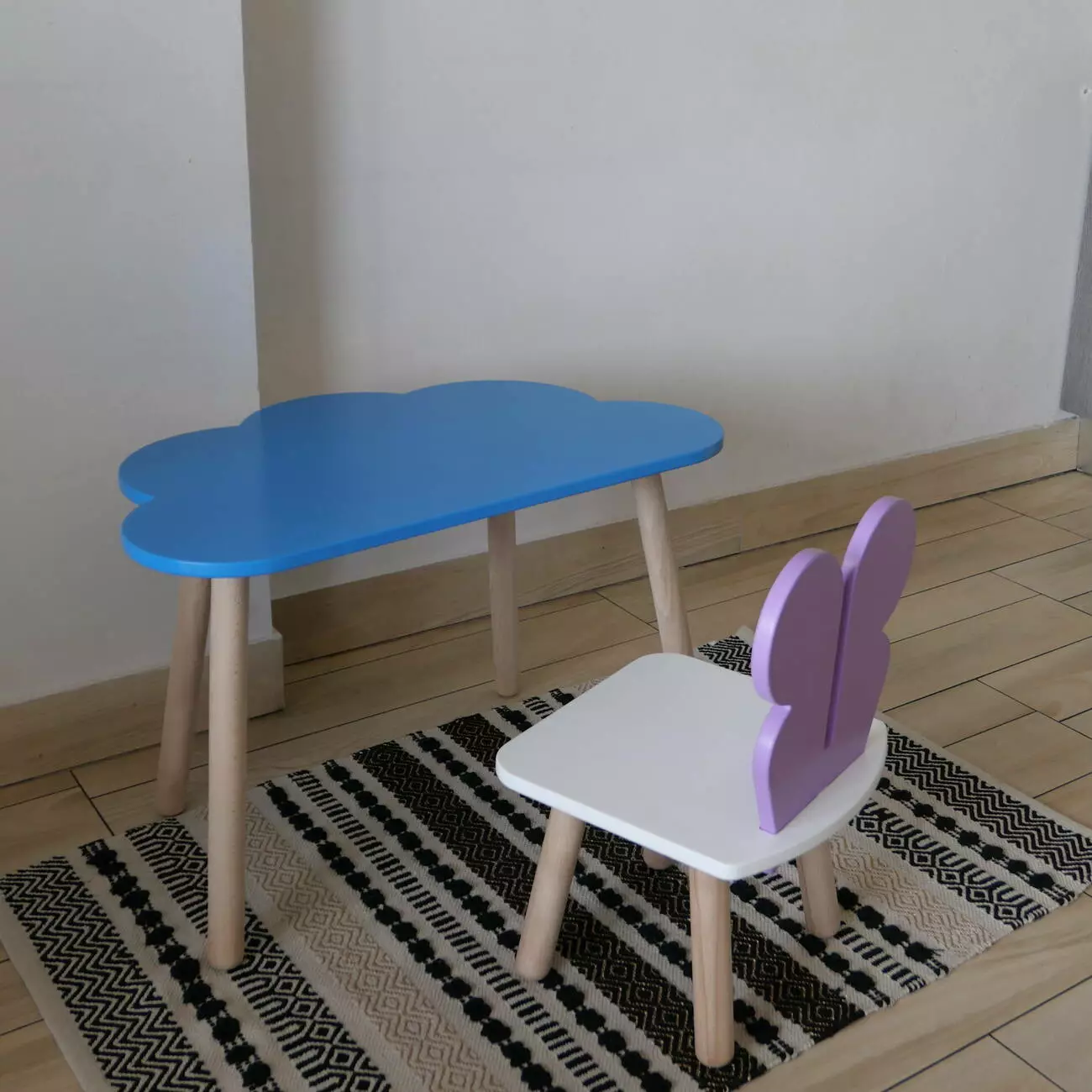 Комплект стіл та стул дитячий ChildWood - Set Стіл блакитний хмаринка + стілець білий бузковий Метелик (Фанера)