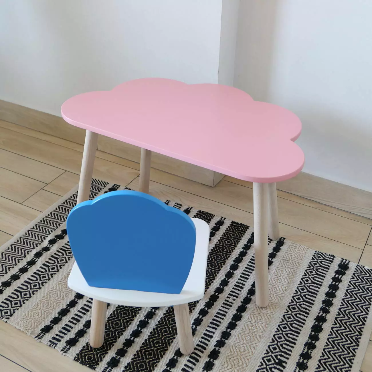 Комплект стіл та стул дитячий ChildWood - Set Стіл рожевий хмаринка + стілець білий блакитний Мушля (Фанера)