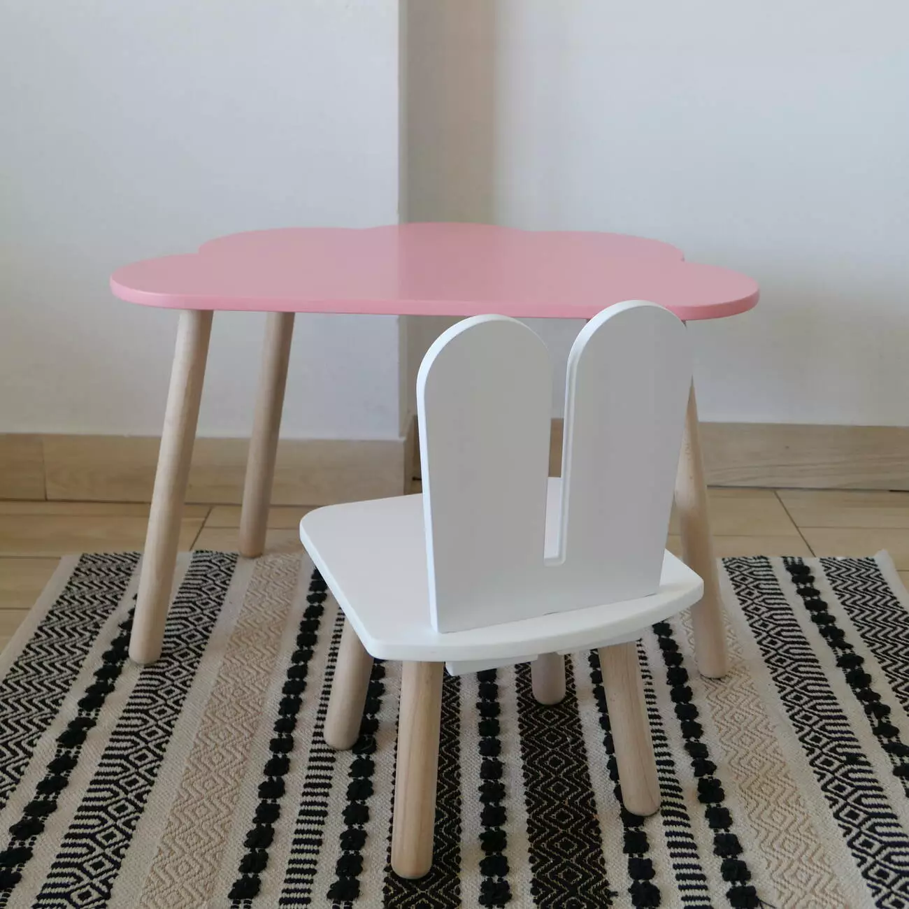 Комплект стіл та стул дитячий ChildWood - Set Стіл рожевий хмаринка + стілець білий Зайчик (Фанера)