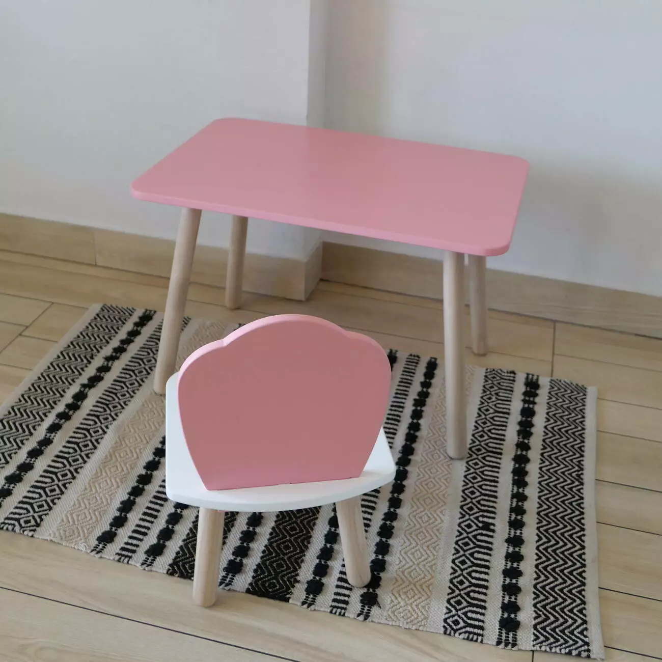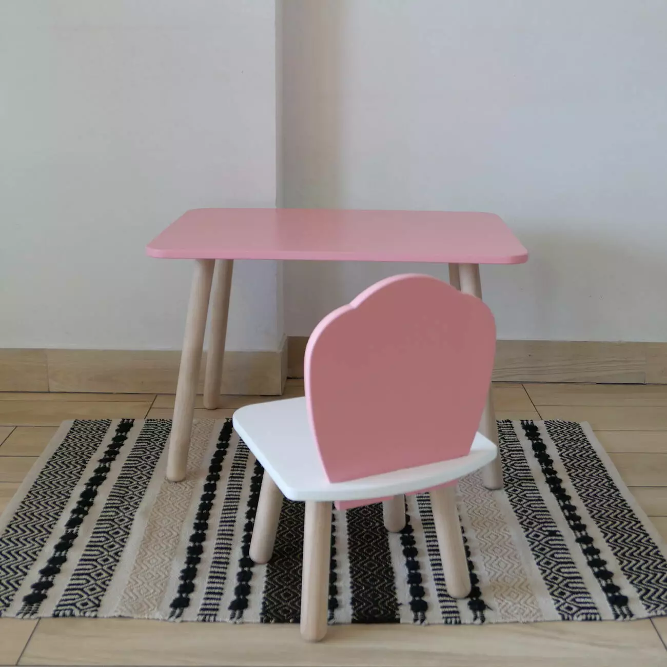 Комплект стіл та стул дитячий ChildWood - Set Стіл рожевий прямокутний + стілець білий рожевий Мушля (Фанера)