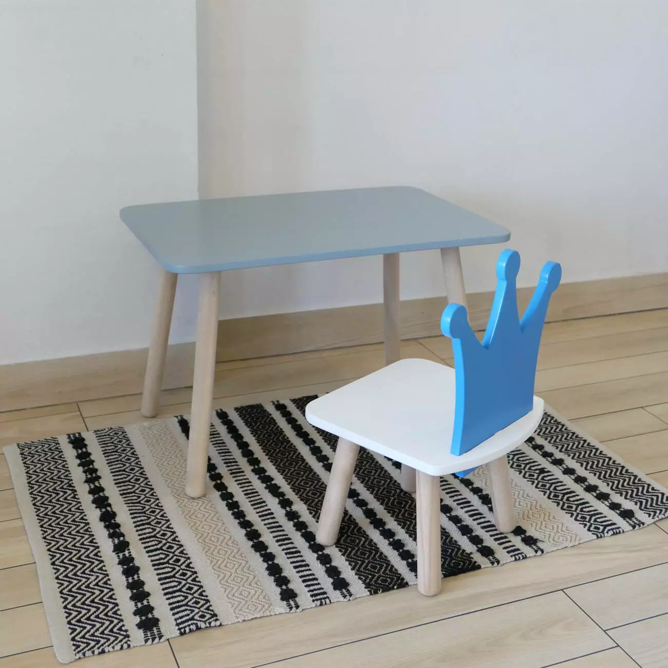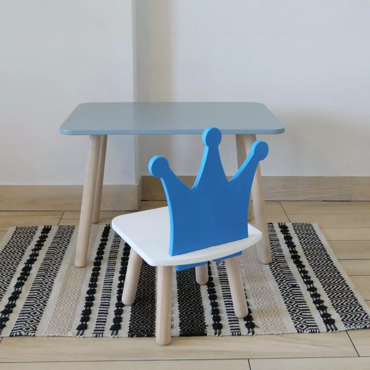 Комплект стіл та стул дитячий ChildWood - Set Стіл сірий прямокутний + стілець білий блакитний Корона (Фанера)