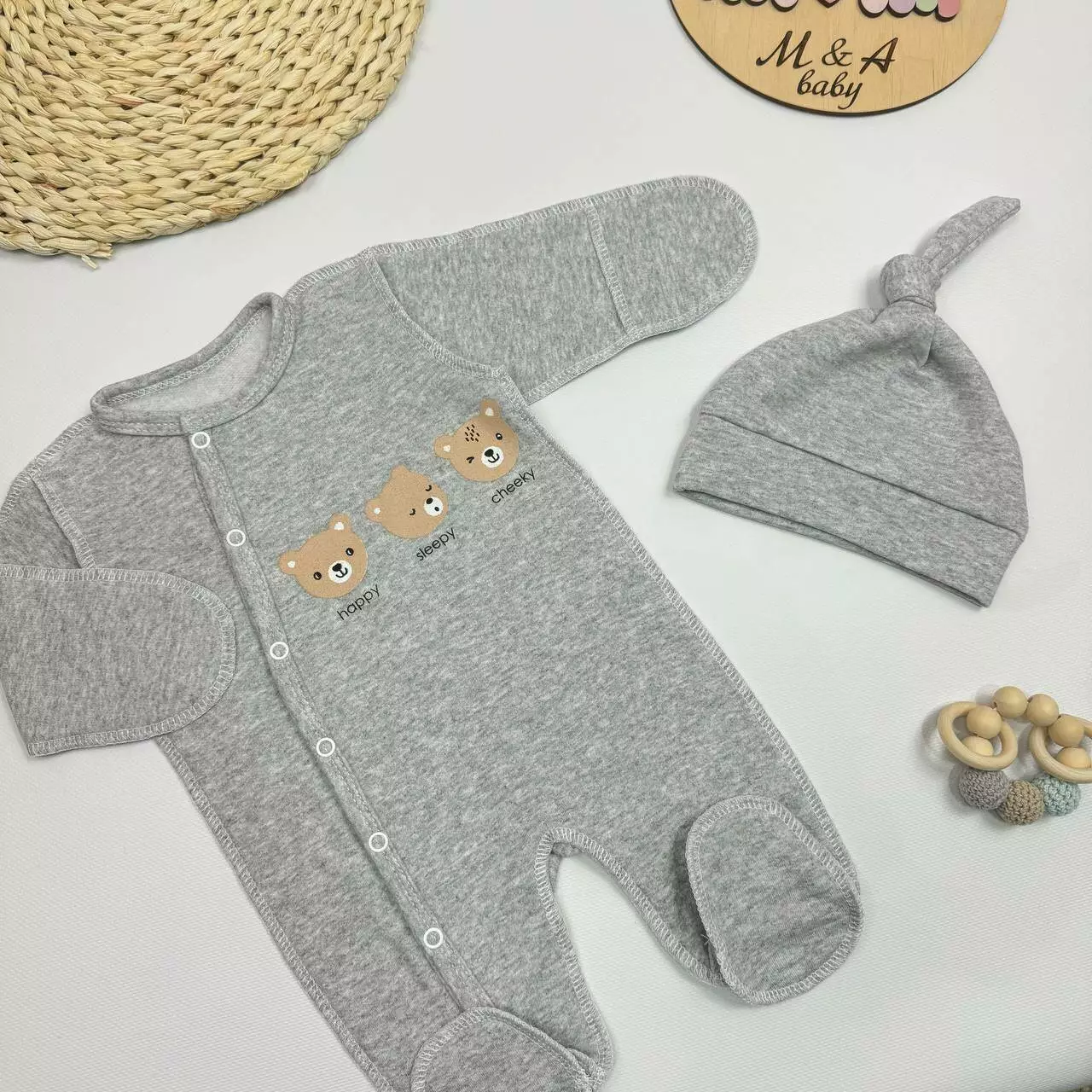 Створіть комфорт та затишок для вашого малюка з цим чудовим комплектом! Чоловічок та шапочка виготовлені з тканини футер начіс, що забезпечує тепло та м'якість навіть в прохолодну погоду. ????????