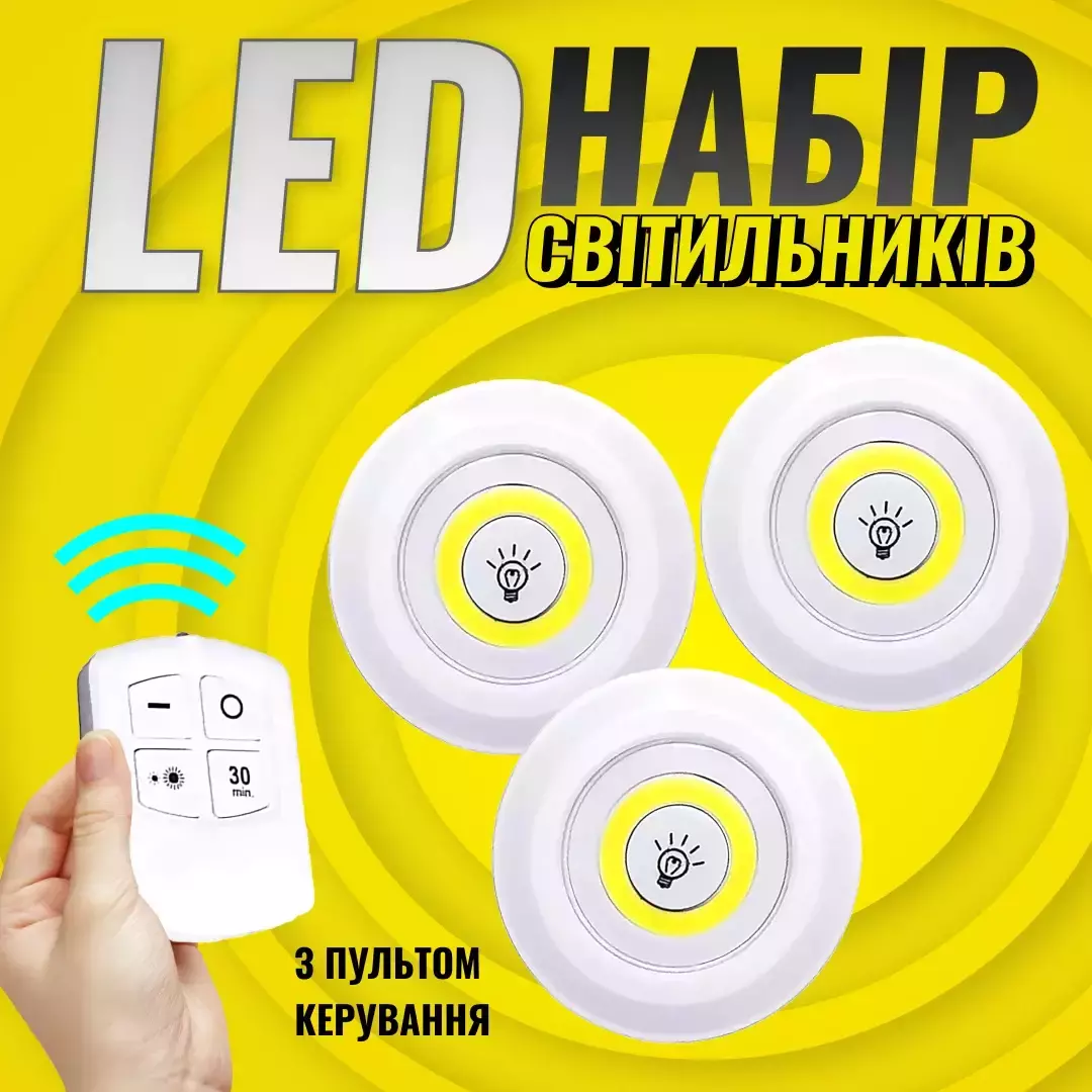 Наш комплект из 3 светодиодных лампочек на батарейках и пульта