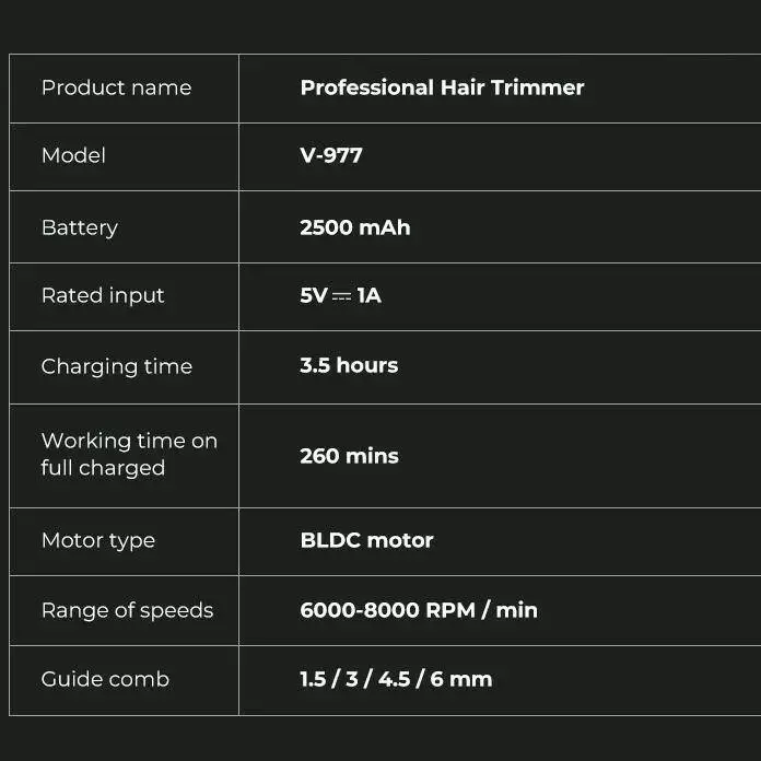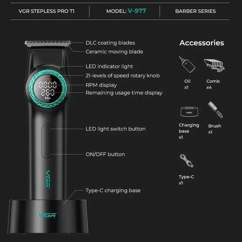 Універсальний професійний набір для догляду за бородою, вусами та волоссям, що включає триммер VGR V-977 та електробритву-шейвер VGR V-377. Цей комплект поєднує в собі потужність, точність та зручність, забезпечуючи повний спектр стрижки та гоління для чоловічого догляду. Надійний металевий корпус, продумана ергономіка та довговічні матеріали роблять набір відмінним вибором як для домашнього використання, так і для професійного застосування у барбершопах та салонах.