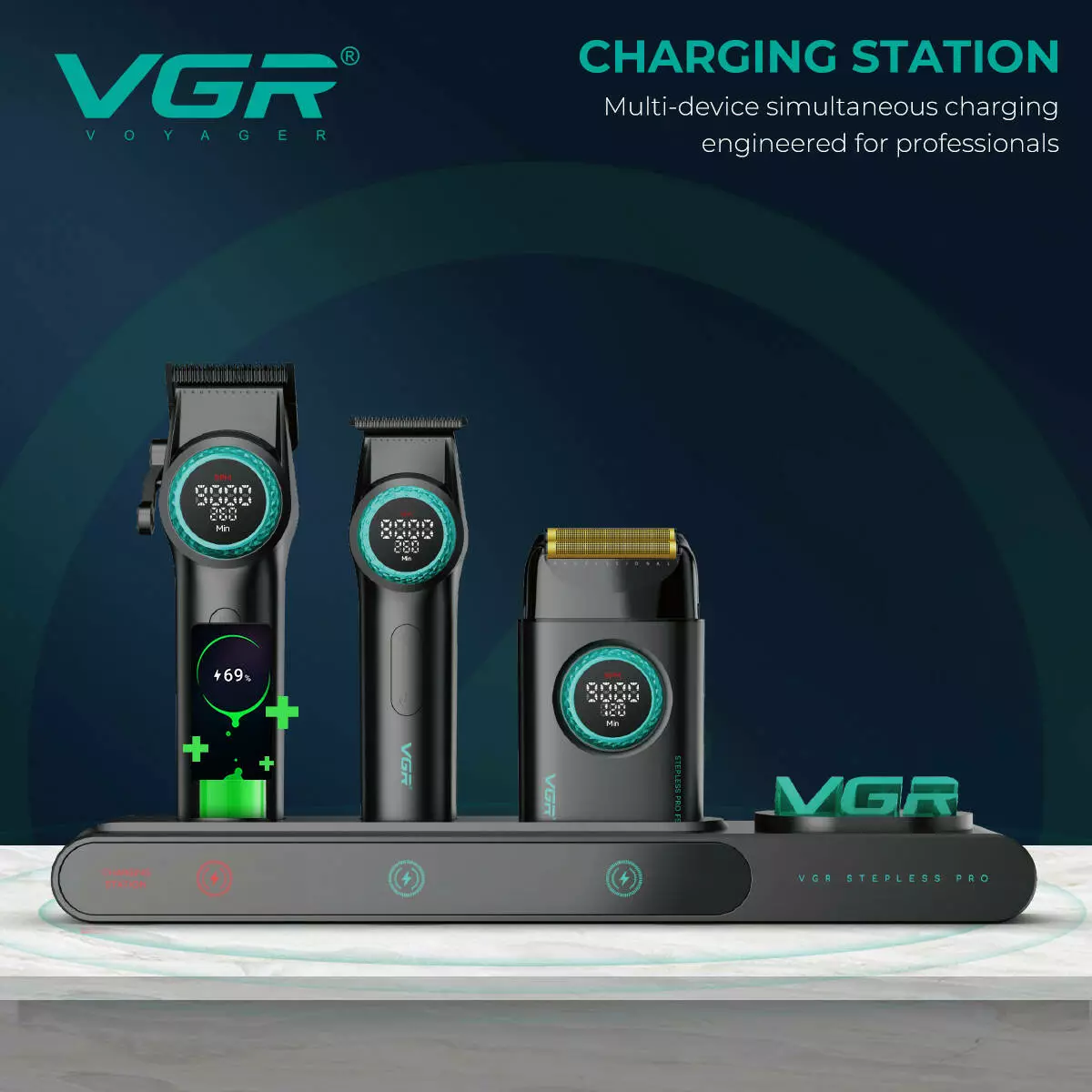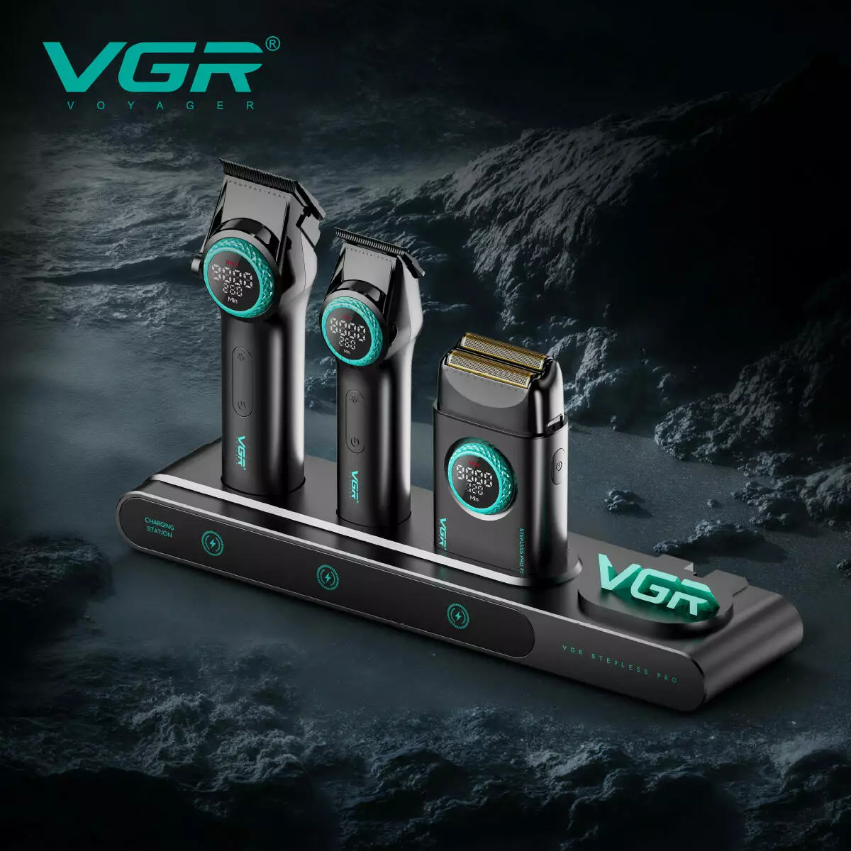 Комплект VGR STEPLERSS PRO 3 IN 1 BLACK, машинка для стрижки (Clipper), тример, шейвер
