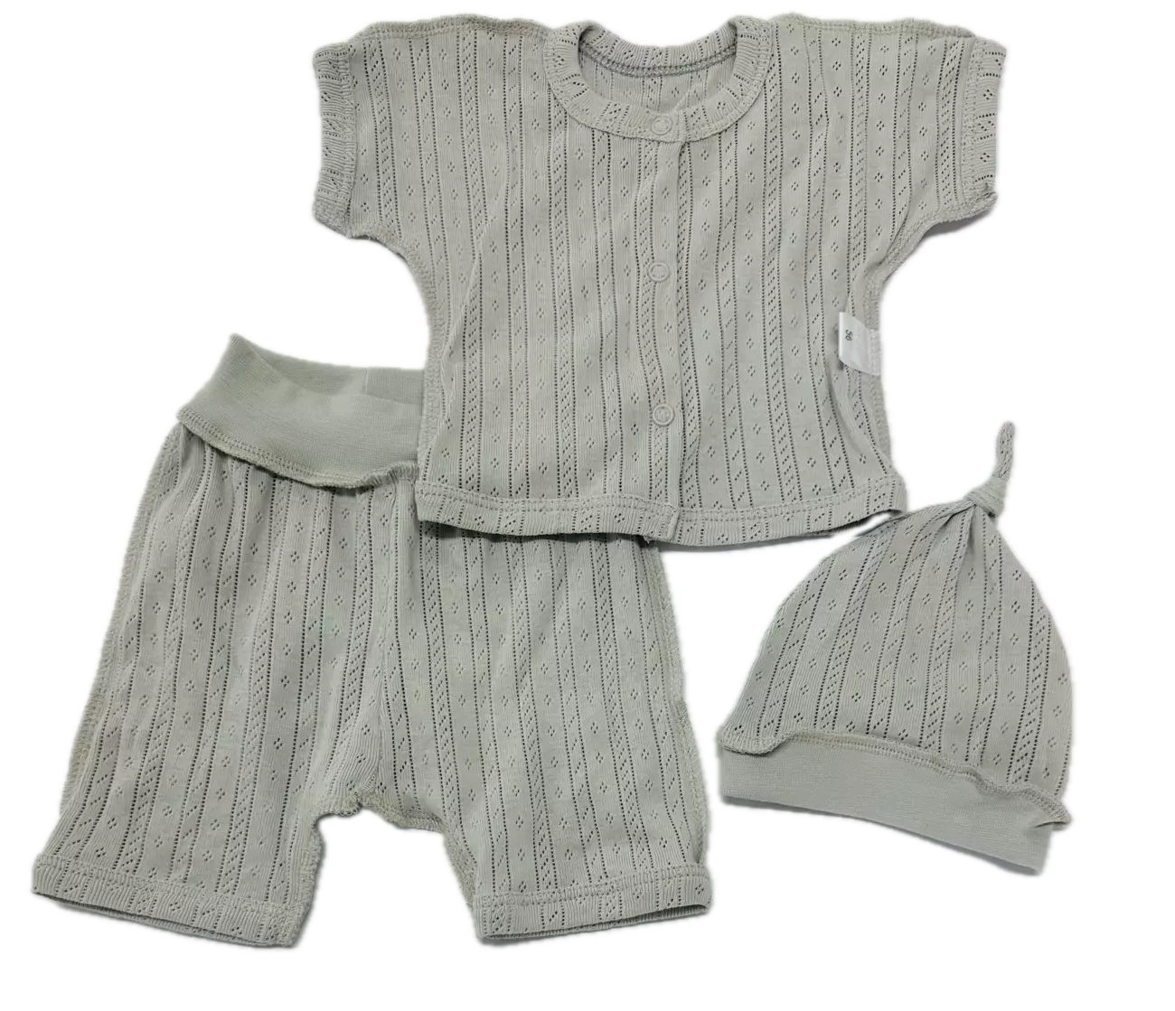 Комплект ясельний: льоля зкоротким рукавом, штанці вкорочені, шапочка. Полотно- ажурний ластик, бавовна 100%