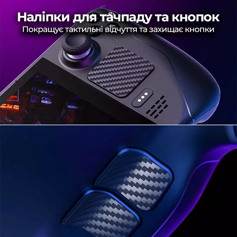 Легкая и точная наклейка обеспечивается тонкой текстурой, которая повышает комфорт во время игры и защищает сенсорную панель и задние клавиши от царапин и износа.