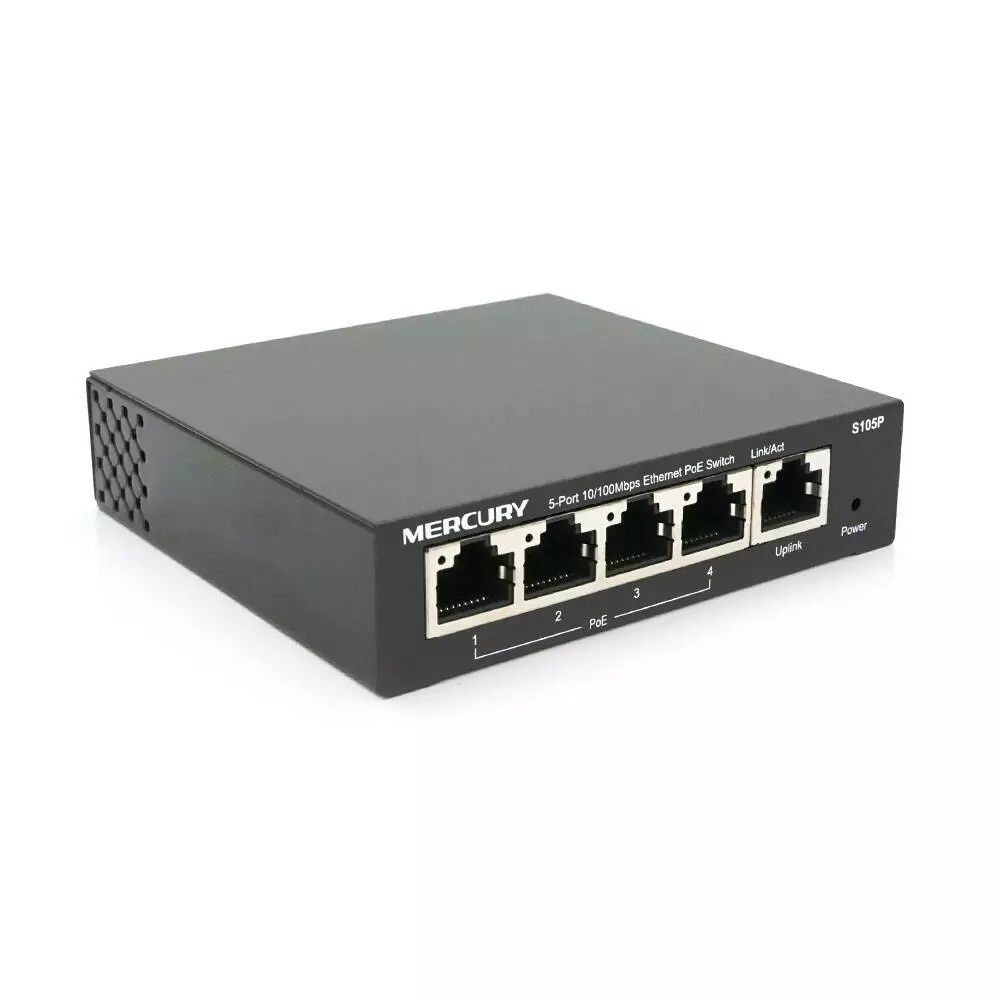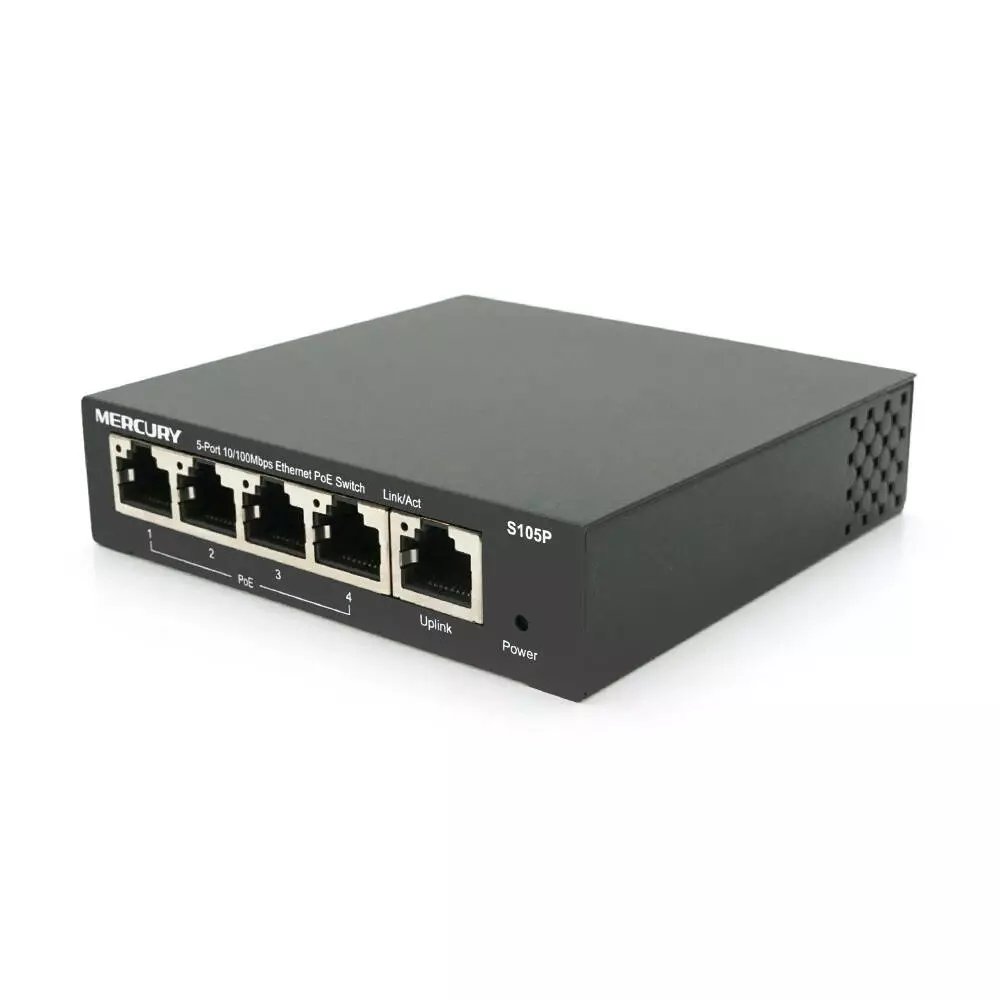 - Кількість портів: 4 порти POE + 1 порт Ethernet (Uplink).