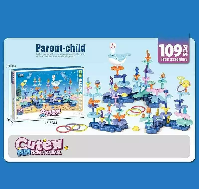 Конструктор 689-3 (18) "Морський світ", 109 деталей, кулька левітує, кит випускає потік повітря, кільцекид, вбудований акумулятор 3.7 V, в коробці
