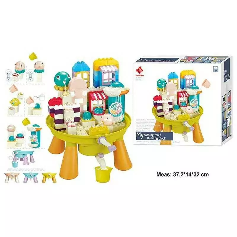 Конструктор 77016 (12) 122 елементи, столик, водяні іграшки, кухлик, антиковзкі наліпки, інструкція, в коробці