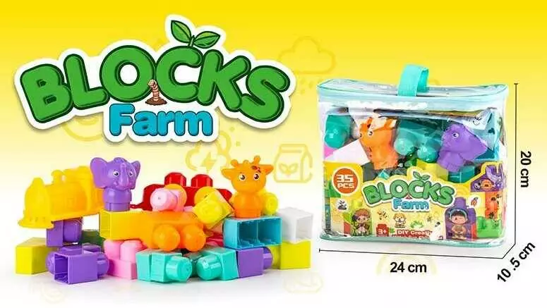 Конструктор JS 8045 (80/2) 35 деталей, потяг, наляпки, великі деталі, у сумці