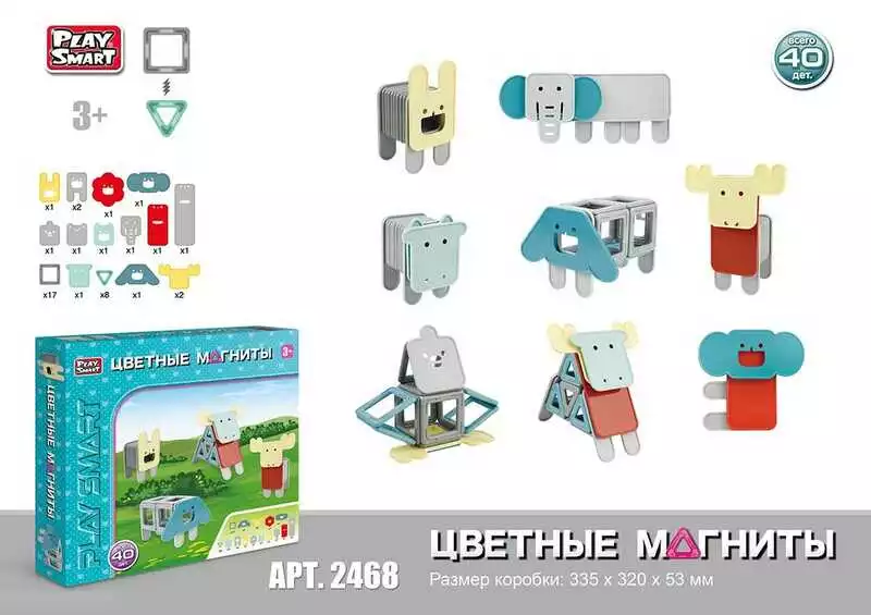 Конструктор магнітний 2468 (24/2) ""Play Smart"", 40 деталей, в коробці