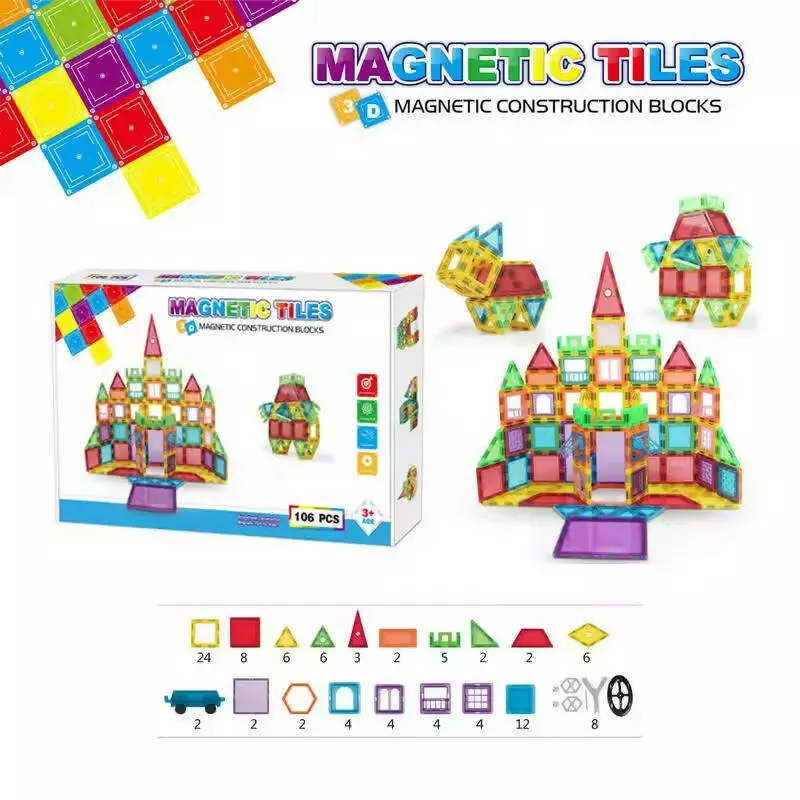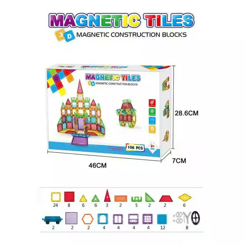 Магнитный детский конструктор на 106 разноцветные детали — это