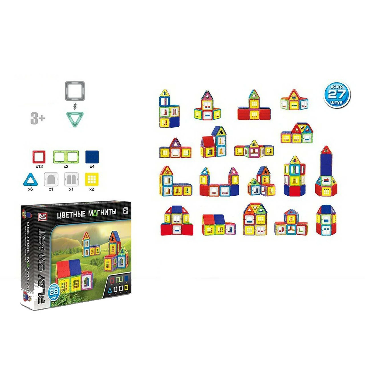 домиков. Главная особенность конструктора - магниты, они помещены в