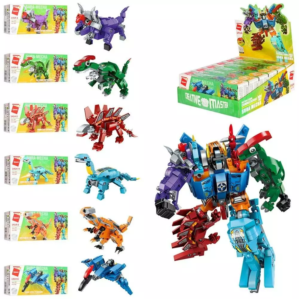 Конструктор Qman 1414 трансформер (робот+діно), від 84дет., 6шт.(мікс видів) в диспл.,22-28,5-10см.