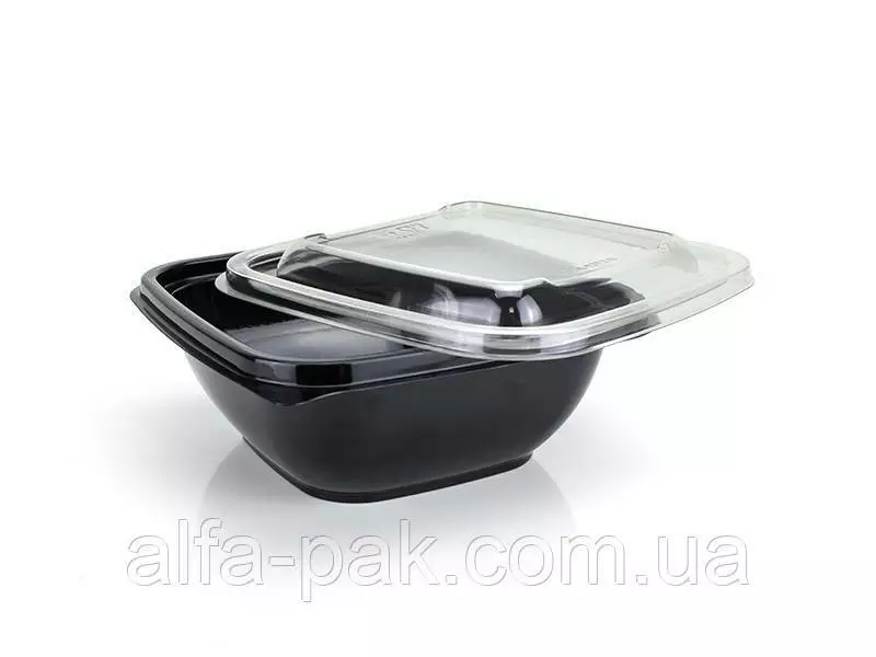 Контейнер 625 мл черный + крышка к контейнеру 160*160 мм прозрачная