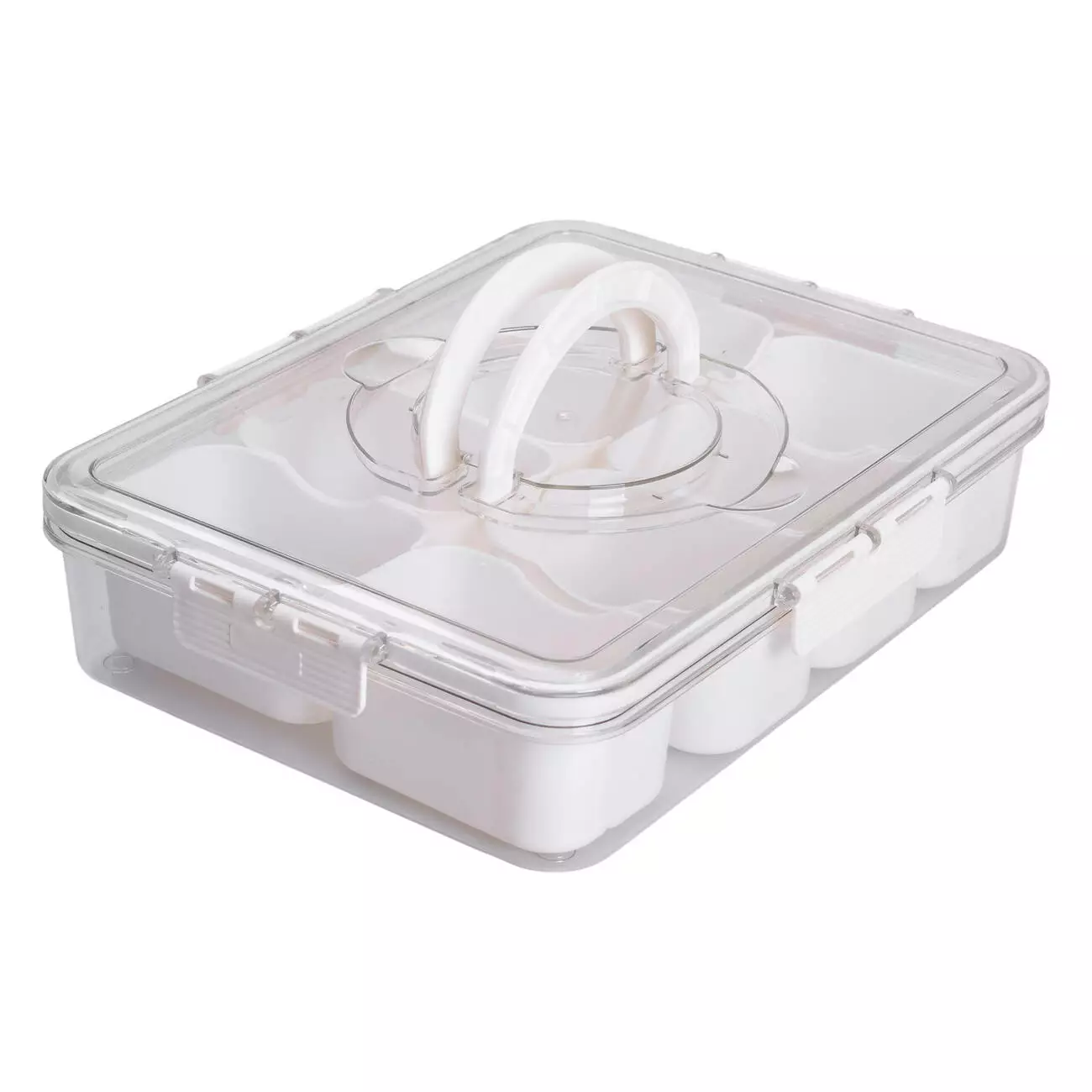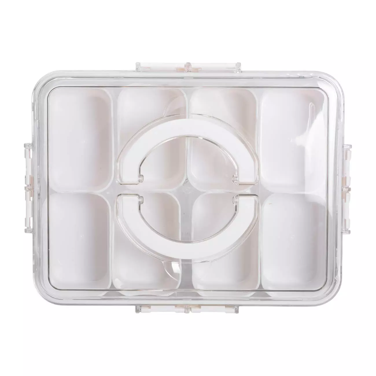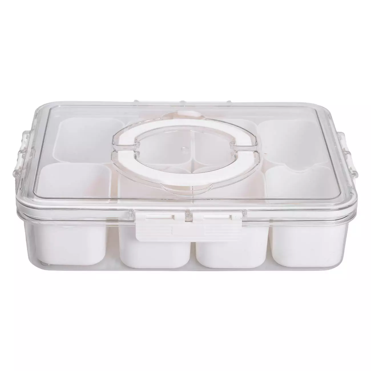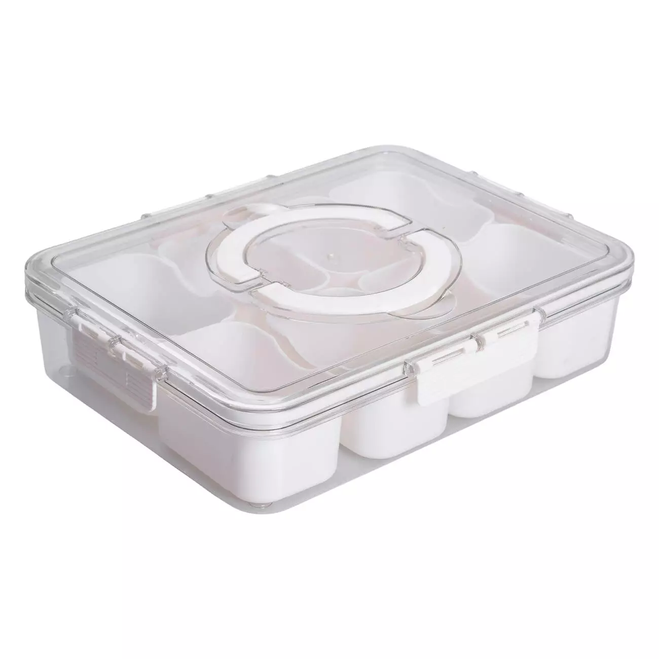 Прозорий пластиковий контейнер прямокутної форми призначений для організованого зберігання невеликих порцій продуктів. Усередині розміщено 8 окремих білих пластикових відсіків, кожен з яких має об’єм 250 мілілітрів. Відсіки знімні, що дозволяє використовувати їх окремо. Завдяки компактним розмірам відсіків можна ефективно розміщувати дрібні інгредієнти без змішування.