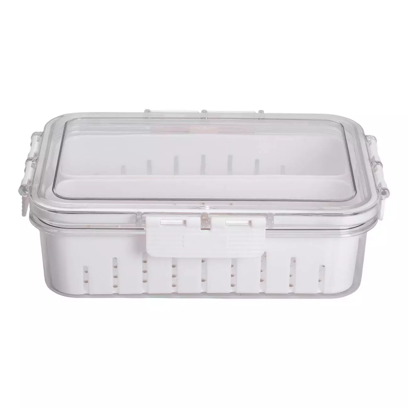 Роздільні секції дозволяють зберігати різні продукти одночасно, не змішуючи їх між собою. Завдяки решітчастій основі продукти не лежать у воді, що позитивно впливає на термін їхньої свіжості. Така конструкція ідеально підходить для холодильного зберігання попередньо вимитих ягід, листової зелені, порізаних овочів або фруктів.