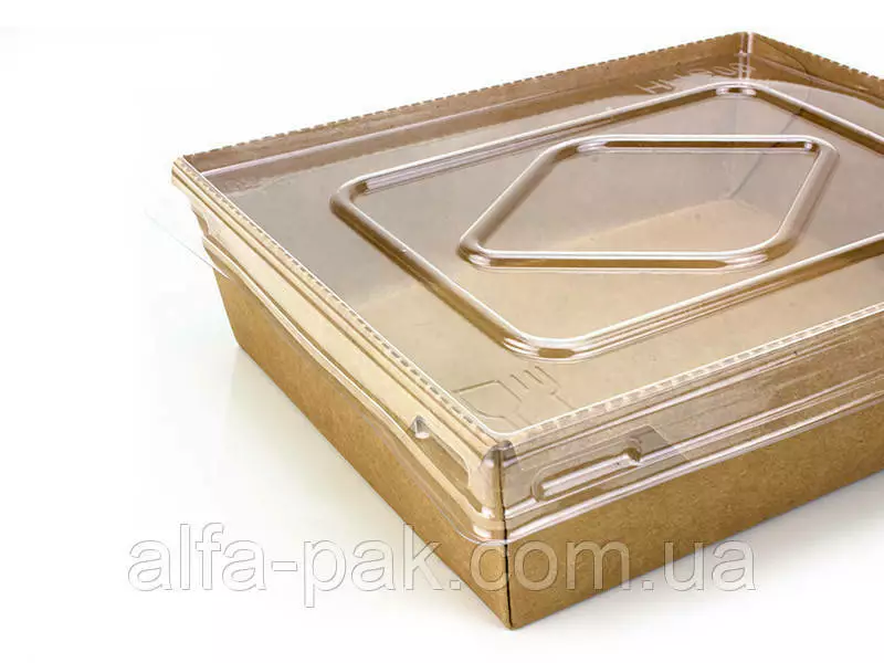 Контейнер прямоугольный крафт с ПЭТ крышкой 900 мл - удобная и