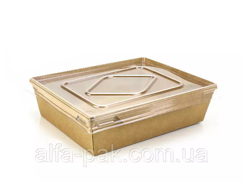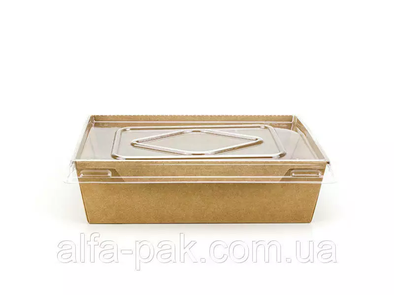 прямоугольный крафт с ПЭТ крышкой 900 мл используется как ланч-бокс