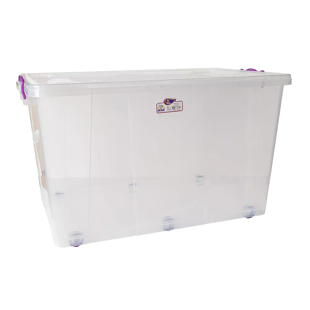 Контейнер для зберігання з фіксаторами з боків забезпечує щільне (не герметичне) закриття кришки. Стінки контейнера міцні і еластичні, що дозволяє використовувати для зберігання харчових продуктів, речей, іграшок та ін. Встановлено шість знімних коліс для зручного переміщенняя.  Виготовлений з високоякісного пластику безпечного для контакту з харчовими продуктами. Температурний діапазон використання від -10 до +110°С.