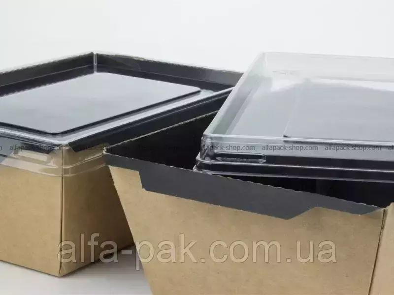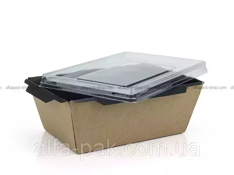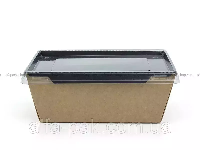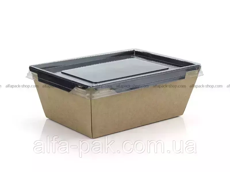 Контейнер прямоугольный крафт-черный с ПЭТ крышкой 1000 мл -