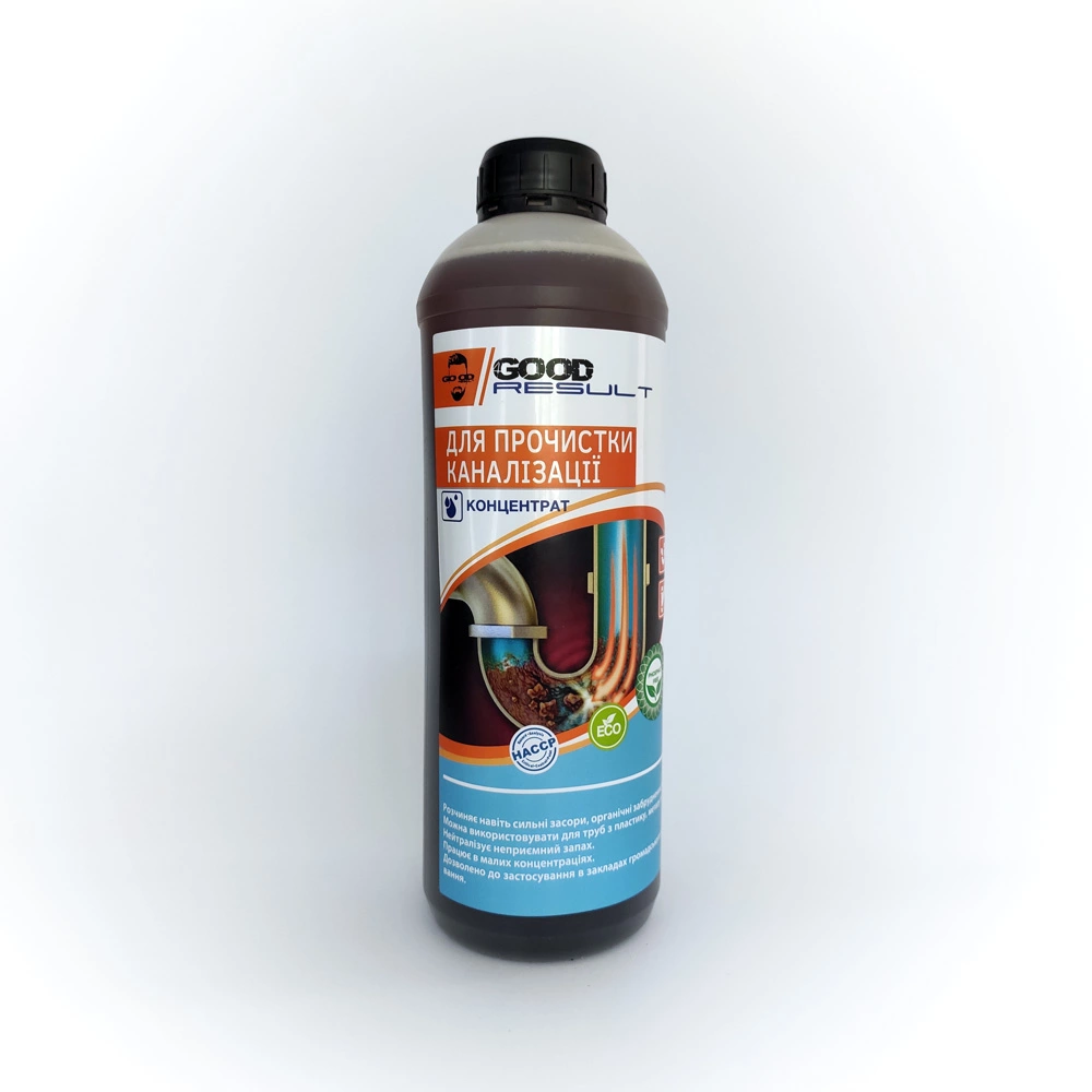 Концентрований засіб з дезінфікуючим ефектом для прочищення каналізаційних труб, розчиняє навіть сильні засмічення, усуває запахи. Поверхні: труби з пластика і металу. Застосовується в туалетних кімнатах, дренажних системах та системах водопроводу. Чистить будь-які засмічення з волосся та жиру, розчиняючи його. Рівень рН відповідно Технічних умов 14
