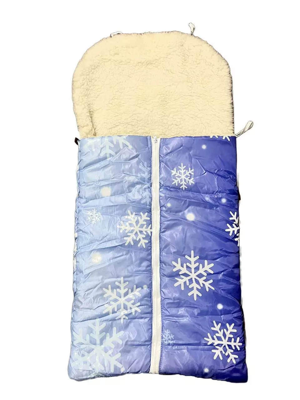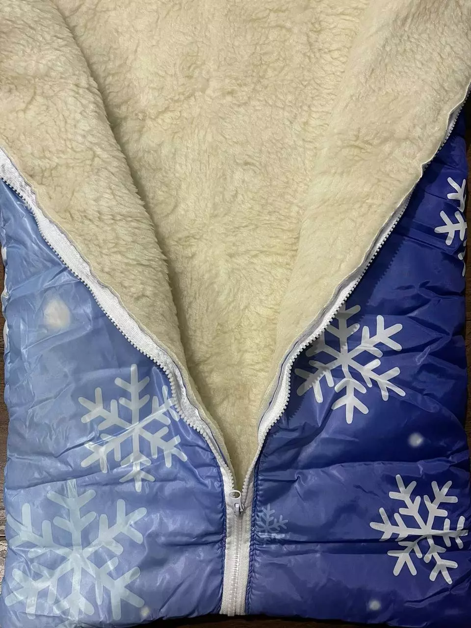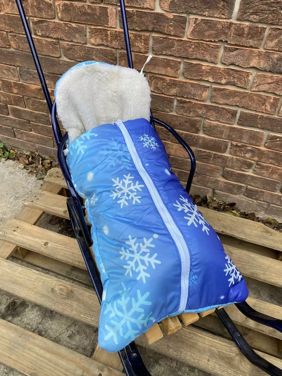 Конверт / чохол для санок, з штучної овчини, на блискавці синій Сніжинки