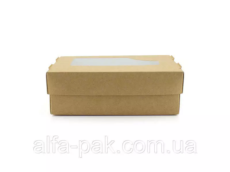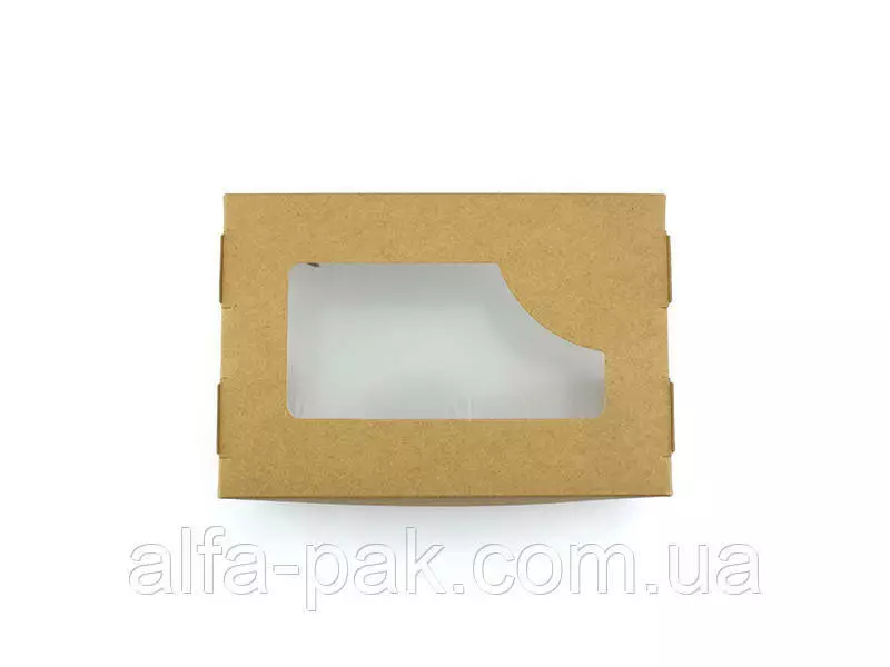 Актуальна для кафе и ресторанов, доставки еды. Коробка с окошком и