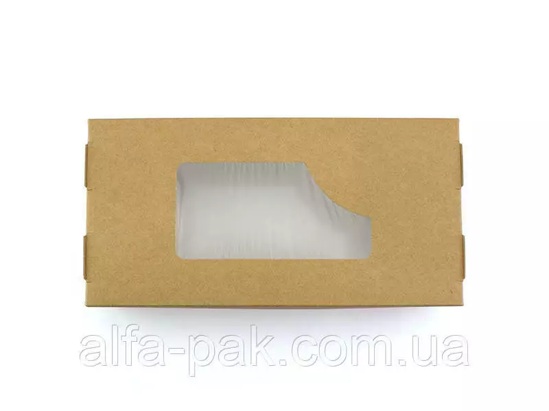 Актуальна для кафе и ресторанов, доставки еды. Коробка с окошком и