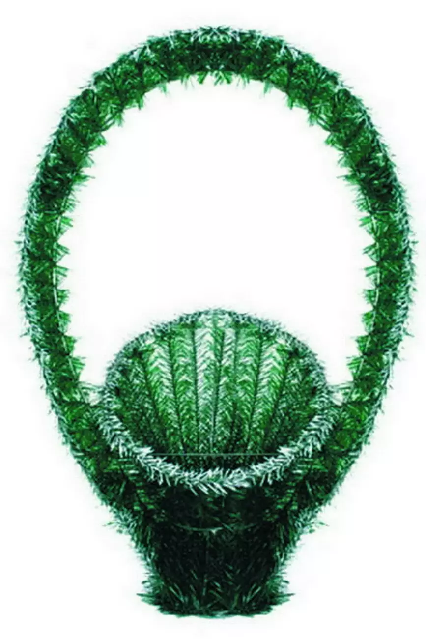 Кошик косий зі штучної хвої з подвійною ручкою. Край вази та кошика украшений кольоровою хвойною гілкою, розмір 90*58*33 см.