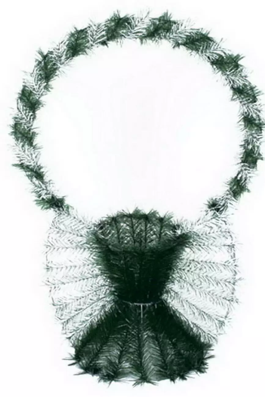 Кошик двокольоровий зі штучної хвої з переплетеною подвійною ручкою. Ваза з ручкою з'єднується відрізками хвої по боках, розмір 69*62*34 см.