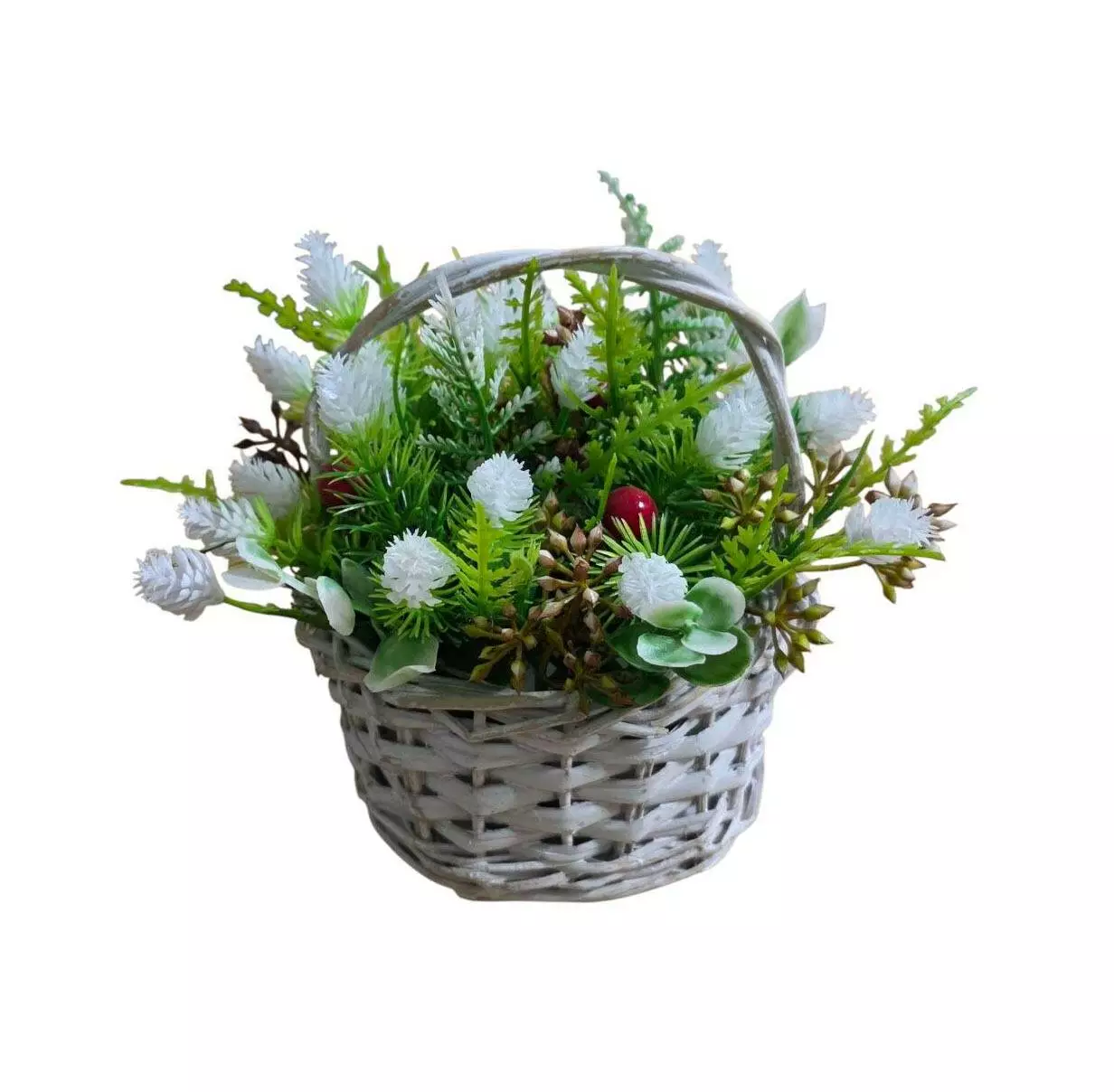 Кошик плетений "Малюк" прикрашений гілочками аспарагуса, папороттю,
