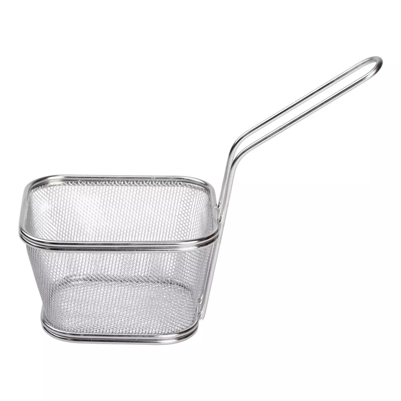 Сервірувальний кошик - практичний аксесуар для подачі гарнірів і закусок. Він ідеально підходить для картоплі фрі, курки, цибулевих кілець, креветок та інших страв, приготованих у фритюрі. Завдяки своїй конструкції кошик забезпечує зручну та ефектну подачу страв.