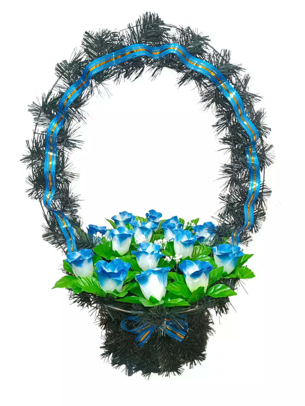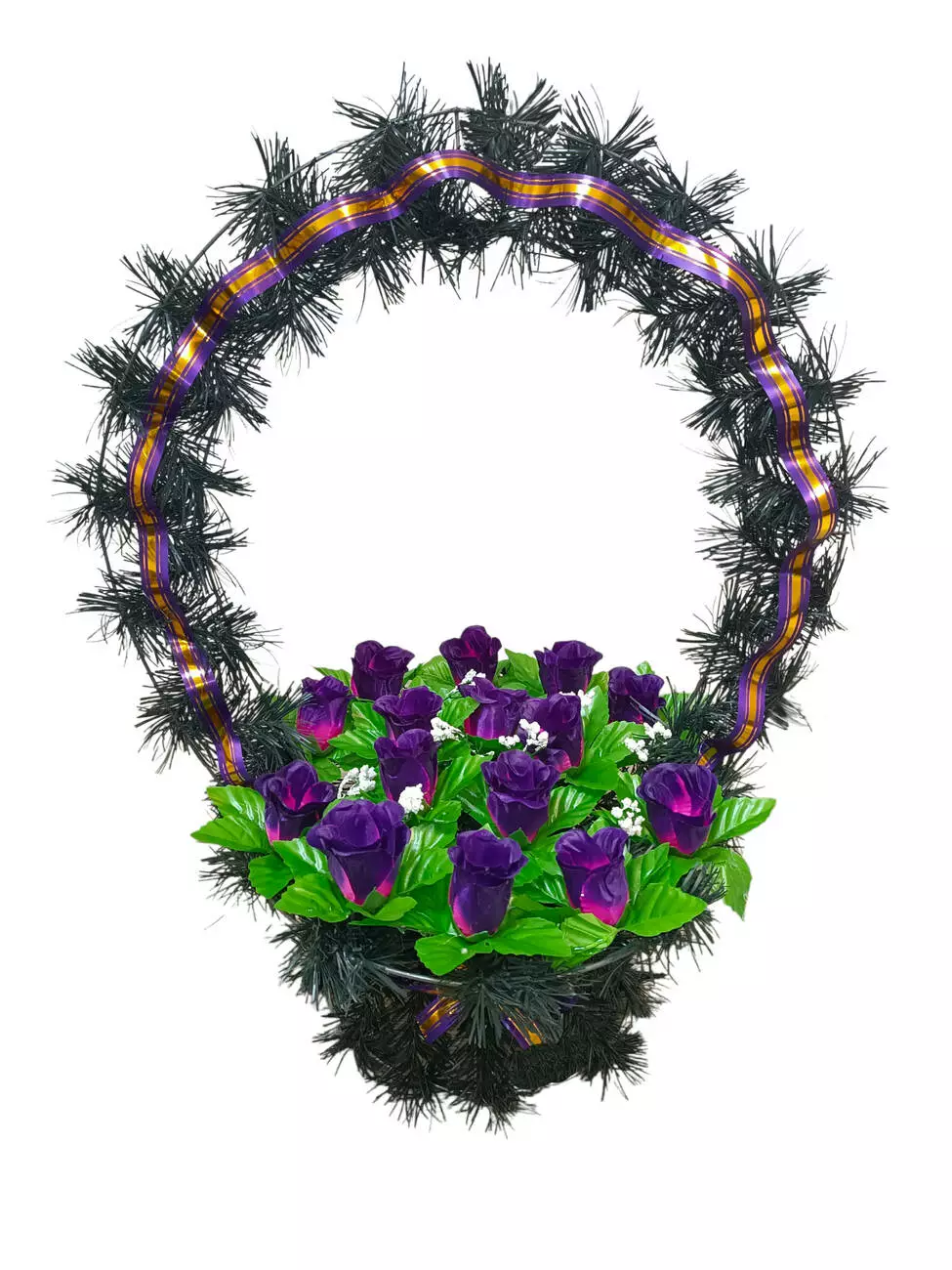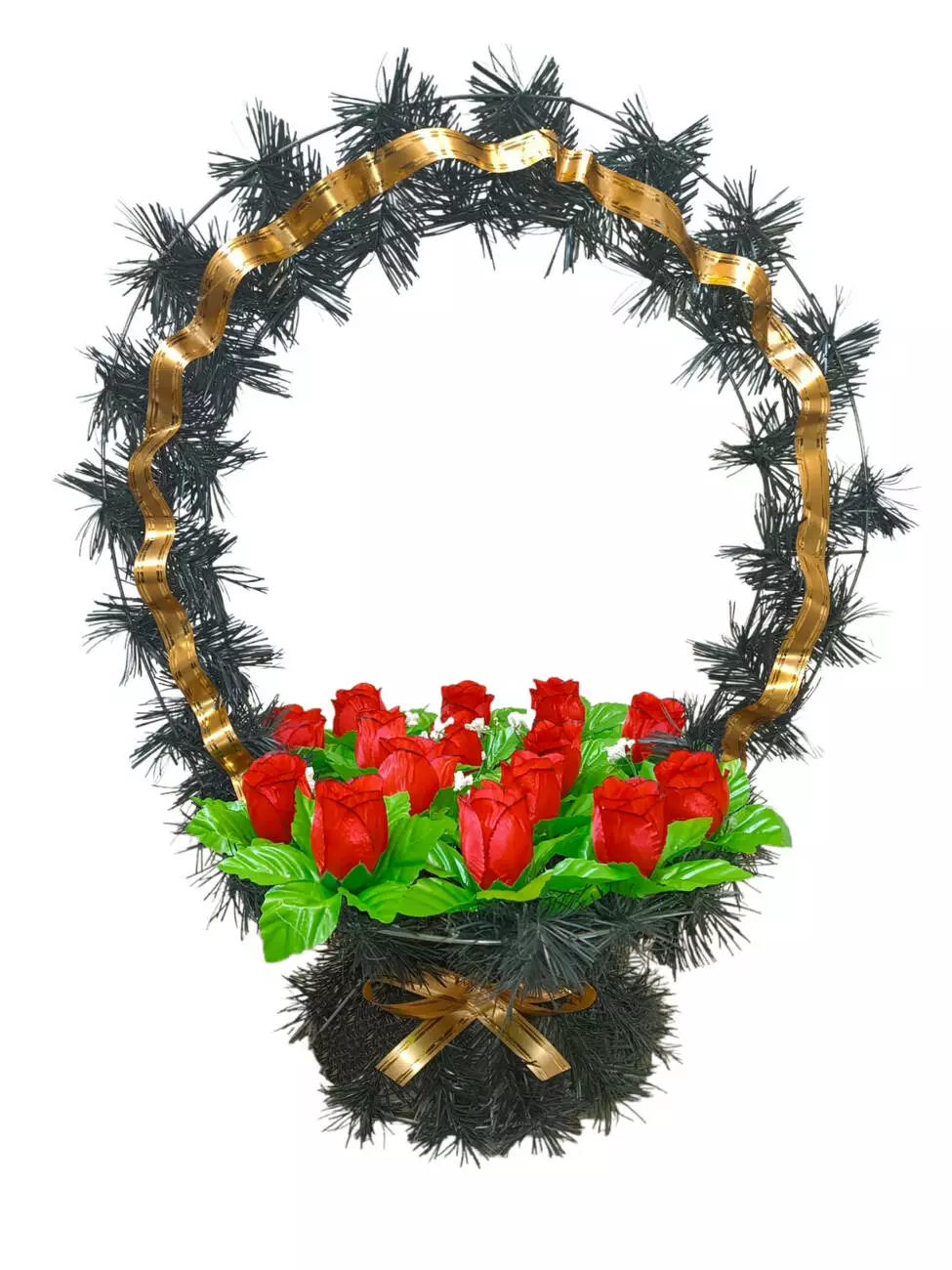 Ритуальний кошик розміром 64*46*35 см. Кошик прикрашений бутонами