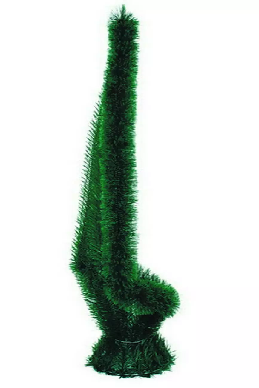 Кошик зі штучної хвої у формі свічки заплетений по спинці вертикальними полосками, край кошика оздоблено йоршом, розмір 107*54*32 см.
