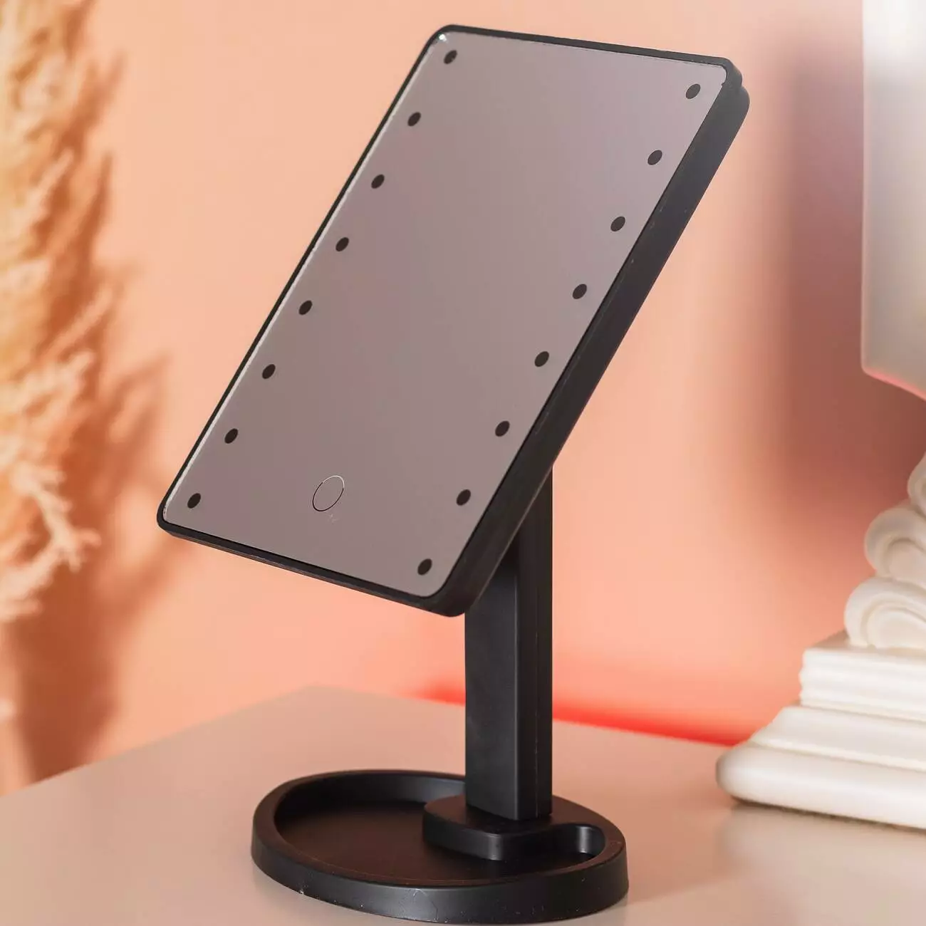дзеркало легко розміщується на туалетному столику або іншій рівній