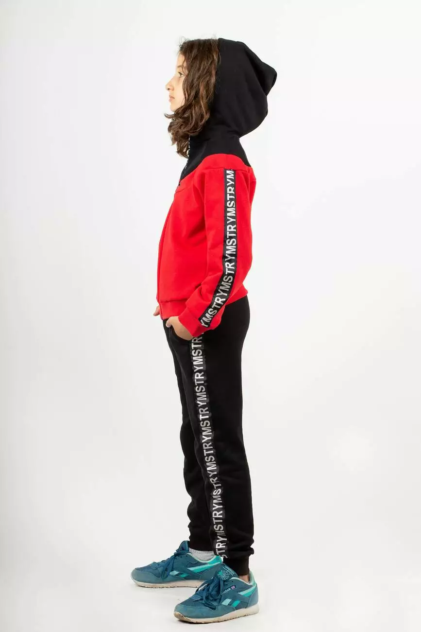 На рукавах брендована стрічка. Без кишень.Низ костюма - чорні штани