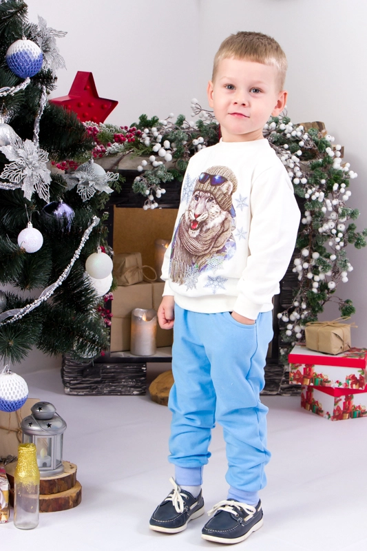Костюм дитячий «Новорічний» перетворить вашу дитину в чарівне створіння, яке випромінює радість і завзяття. Чудовий комплект, до якого входять штанці і кофта з довгими рукавами, прикрашена зображенням символу року, виглядає дуже ошатно і цікаво. Крім того, він добре сідає по фігурі. Костюм виготовлений з натуральної бавовняної тканини. Завдяки особливостям цього матеріалу дитина буде відчувати тільки комфорт і свободу рухів. Штанці і кофта, що входять в комплект, оснащені зручними еластичними манжетами. Костюм досить щільний і теплий, тому підійде для будь-якого пори року. Його можна носити вдома, а також надягати в дитячий сад і на прогулянку. Він добре переносить прання, завдяки чому відмінно підходить для щоденного використання.