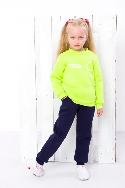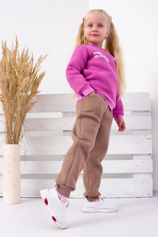 Якщо ви не знаєте, який дитячий одяг взяти з собою для подорожі або поїздки за місто, то костюм від ТМ "Трикотажний Край" підійде найкраще. У ньому кожна дівчинка буде активно пересуватися, не відчуваючи скутість рухів і неприємне тертя швів або манжетів. Адже всі деталі комплекту ретельно опрацьовані: м'які і легкі матеріали не парять і не подразнюють шкіру, а внутрішні шви ретельно оброблені і не відчуваються під час носіння. Матеріал виготовлення - 3-х нитка футер (80% бавовна 20% поліестер) - дуже практична, щільна тканина. Складається костюм зі світота і штанів. Світшот - вільного силуету зі спущеним рукавом на манжетах, декорований локанічним нагрудним принтом. Штани - вільного крою на манжетах, по переду 2 бічних кишені.