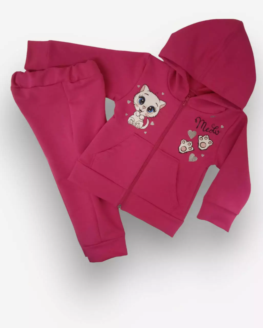 Кофта застегивается на молнию, есть капюшон, на рукавах трикотажный
