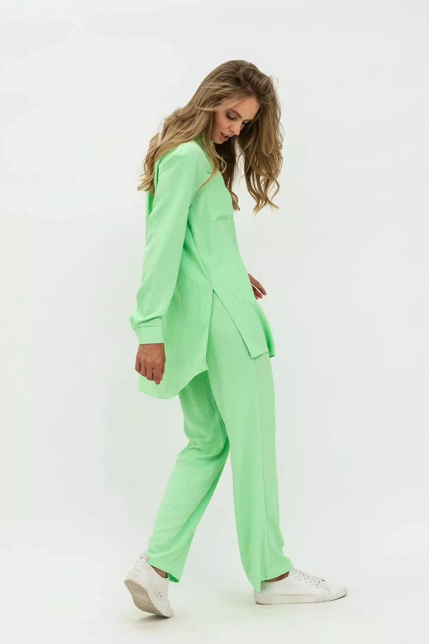 планке. Брюки фиксируются на талии с помощью широкой резинки. Это