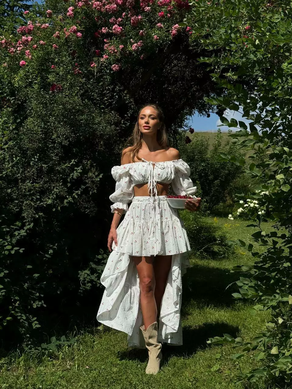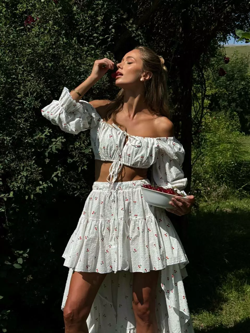 Ліф-топ та спідниця з коротким передом та максі позаду Універсального розміру, топ регулюється завʼязками Талія спідниці на гумці та теж на регуляторі