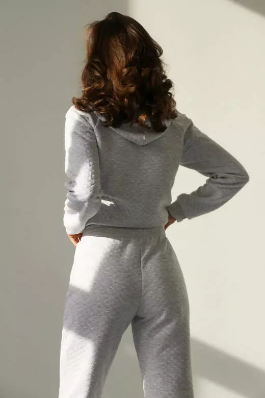 Костюм спортивний капітоній кофта з бігунцем та штани джогери, сірий меланж
