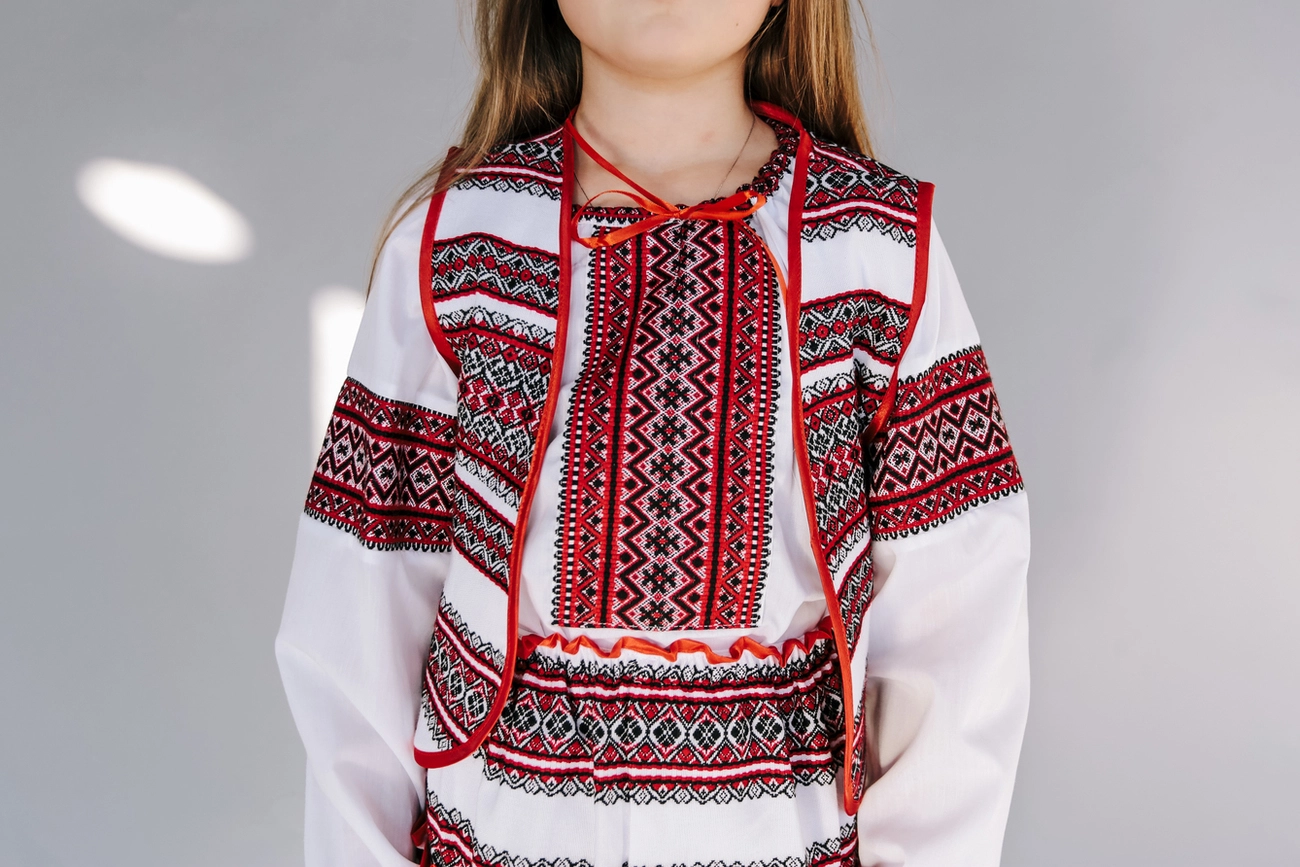 Дитячий вишитий костюм білого кольору із оригінальним