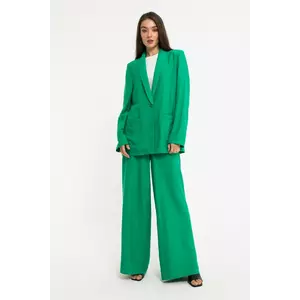Цей костюм у яскравому і незвичайному кольорі надає образу особливої родзинки і привертає увагу оточення. Оверсайз жакет і широкі штани-палаццо створюють ефект максимального комфорту і свободи рухів, що робить цей костюм ідеальним вибором для будь-якого випадку — від офісних зустрічей до світських заходів. Смарагдовий льон — це не тільки гарно, а й екологічно, що робить цей костюм ще привабливішим для тих, хто піклується про природу. Крім того, завдяки високоякісному матеріалу і бездоганному виконанню, цей костюм слугуватиме вірним супутником у вашому гардеробі на довгі роки. Якщо ви хочете мати стильний, впевнений і оригінальний вигляд, то цей костюм — прекрасний вибір.