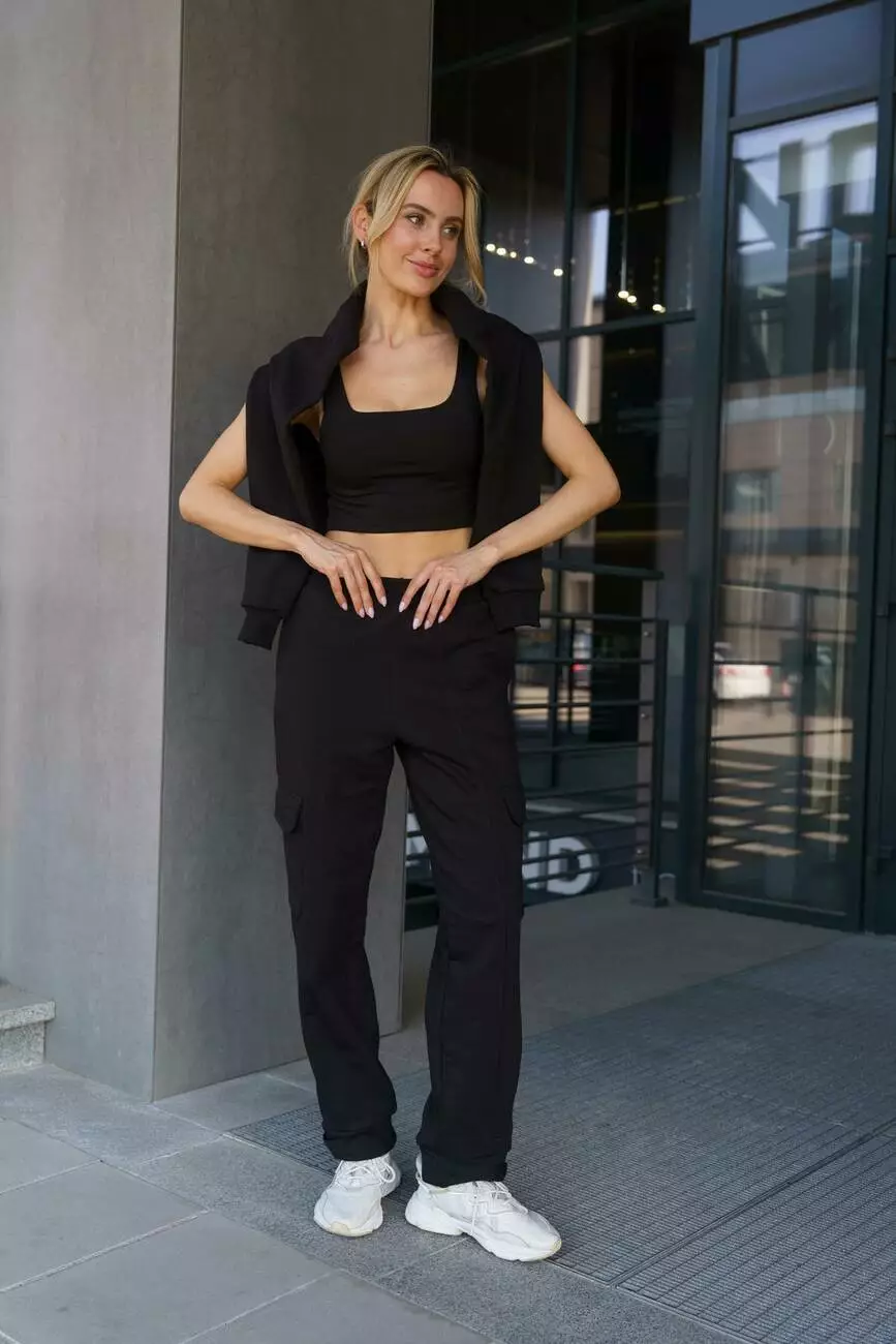 - Штани з двома боковими кишенями та двома накладними кишенями на